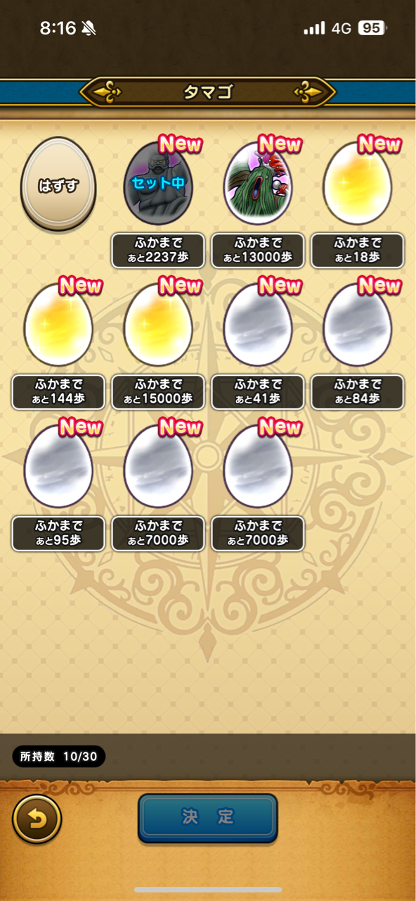 500歩切ると、纏めて更新とかでセットして画面をフィールドに戻した瞬間、一気に孵化することがあり、二桁止めは割と難度高かったです